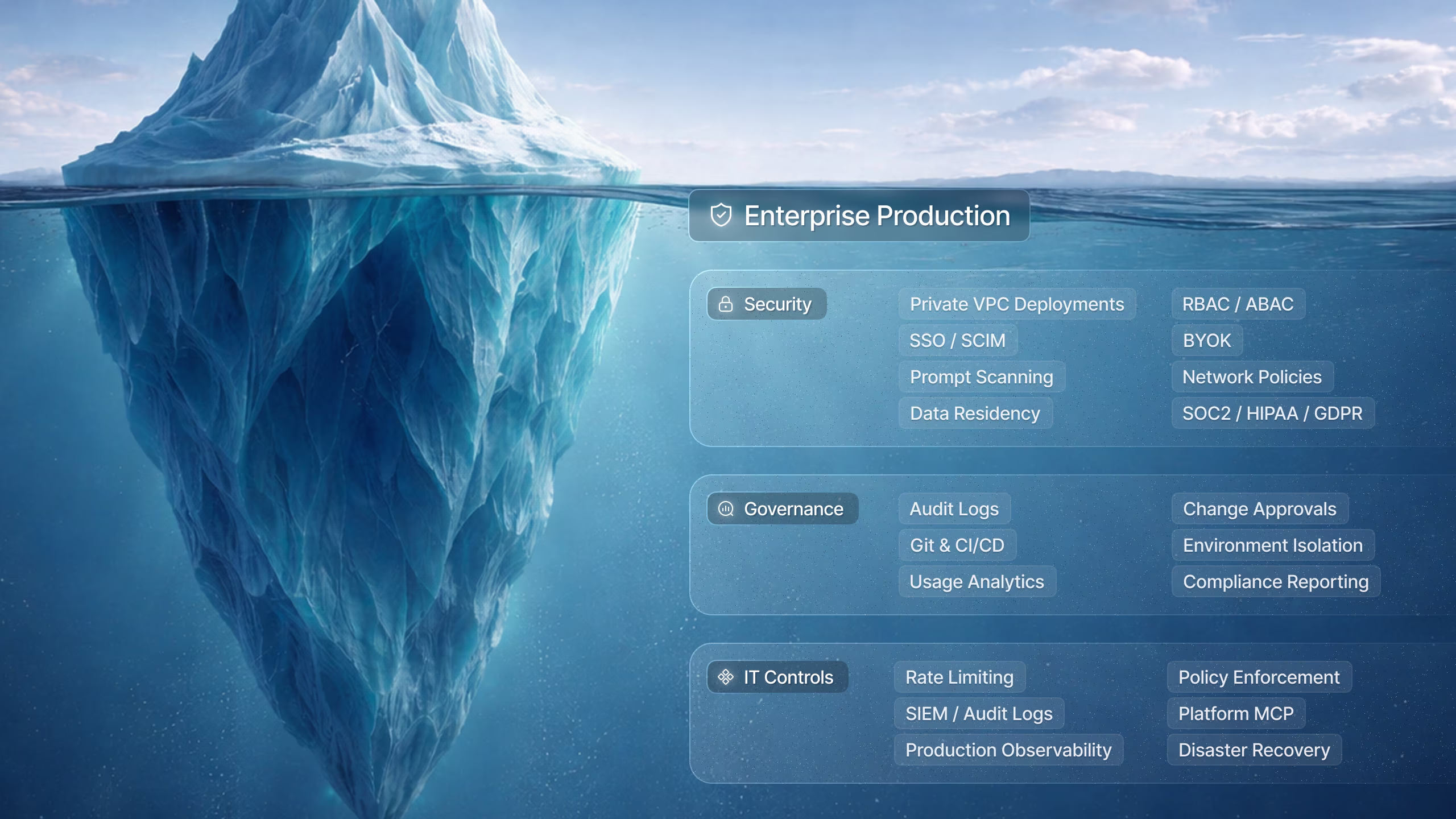 "Those tools are great for proof of concept. But they don't connect well to existing enterprise data sources, and they don't have the governance guardrails that IT requires for production use."