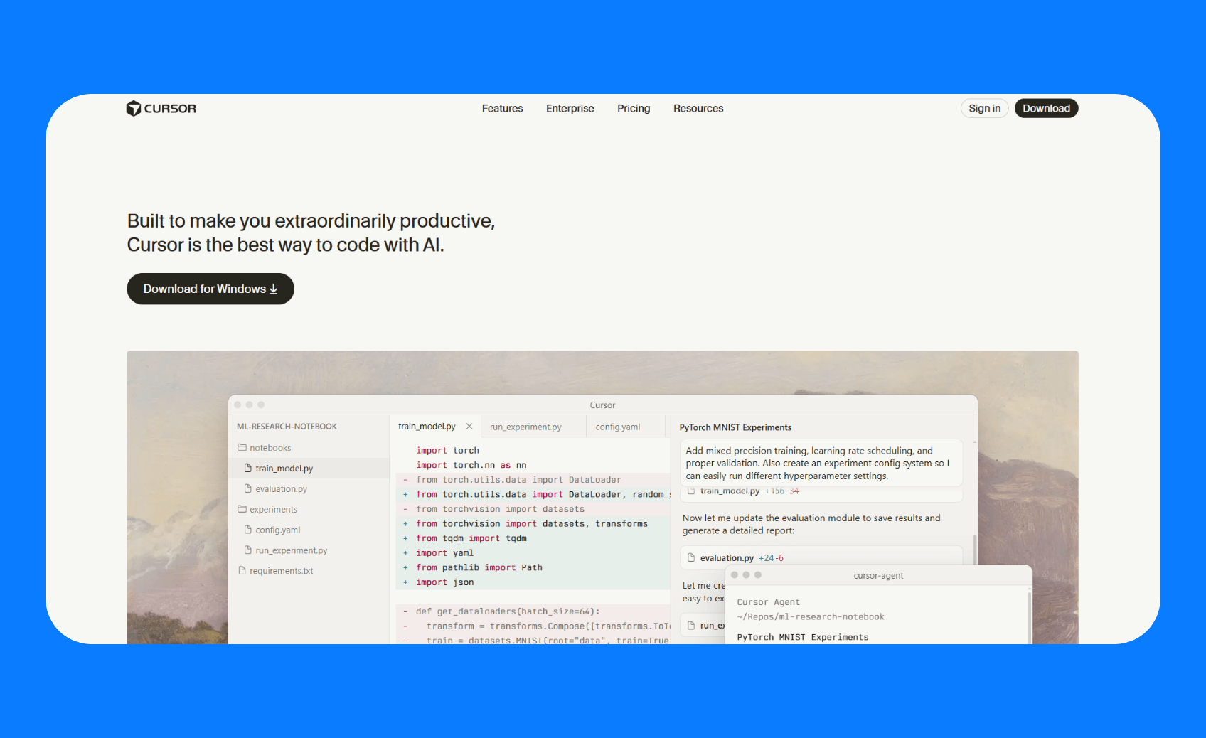 What it does: Cursor acts as an AI pair programmer inside your IDE. You can highlight code and ask Cursor’s AI to refactor it, generate unit tests, explain a bug, or create new files/functionality based on a description.