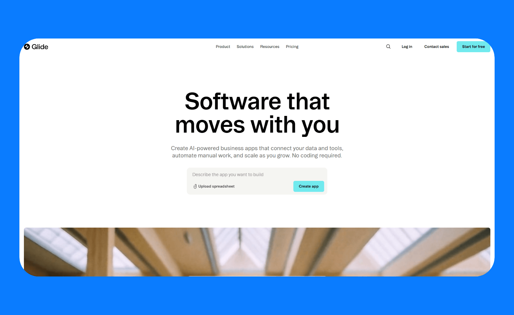 What it does: Glide is a no-code app builder that now incorporates AI features to accelerate development. You can create business apps by connecting to a data source (like a Google Sheet, Excel, or database) and then visually designing an interface using pre-built components.