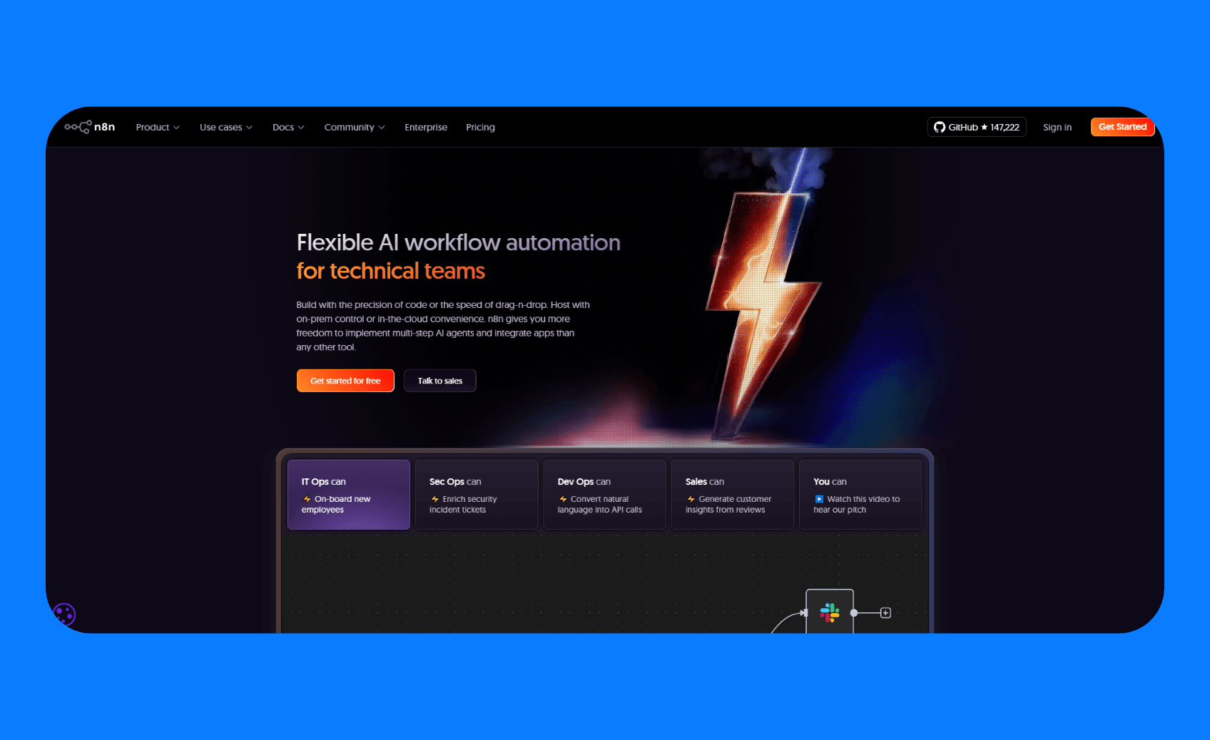 What it does: n8n is an open-source AI workflow automation tool for creating backend workflows, connecting different services, and automating processes without writing glue code.