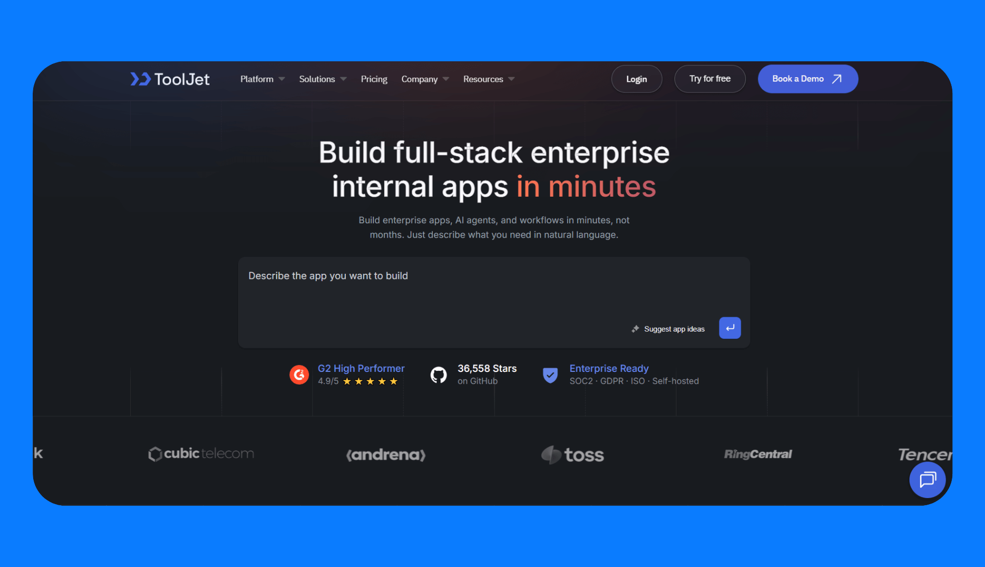 What it is: ToolJet is an open-source low-code platform for building internal tools and admin panels, similar to Retool. It includes a drag-and-drop UI builder and an AI generator that can scaffold apps, queries, and database schemas from natural language prompts.