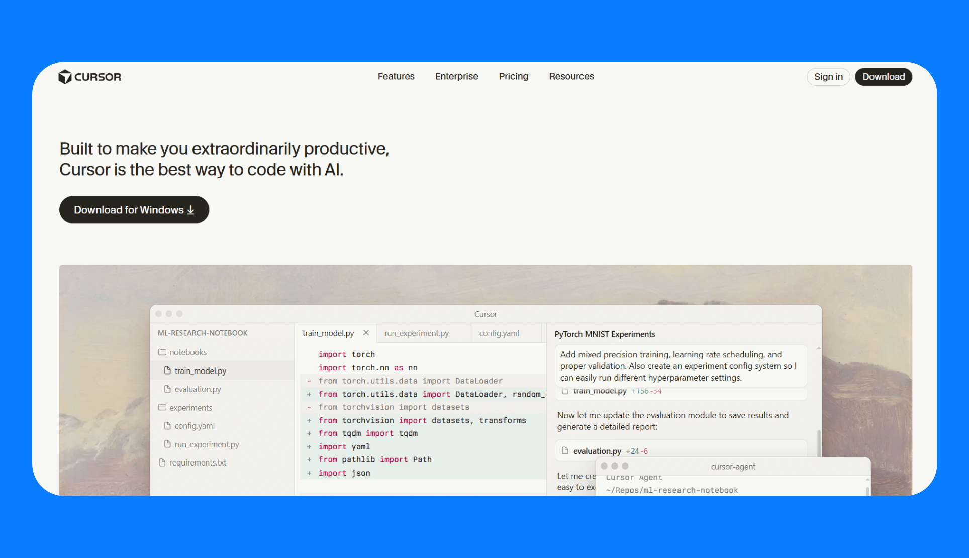 - AI code generation & editing: Cursor applies the changes you describe directly in your code.