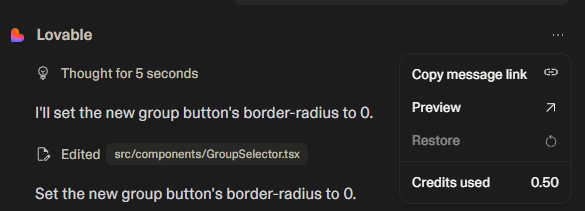 When I requested a change to a button’s border radius, it used 0.5 credits.
