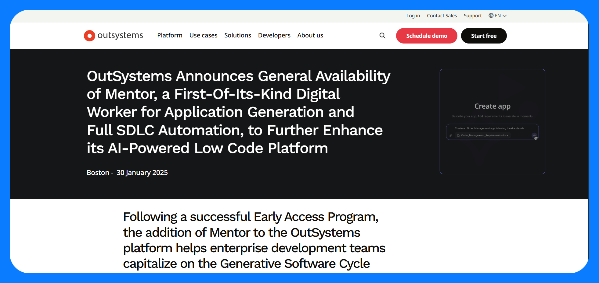 OutSystems is a leading enterprise low-code development platform (founded in 2001) that lets organizations build web and mobile applications through a visual development environment.
