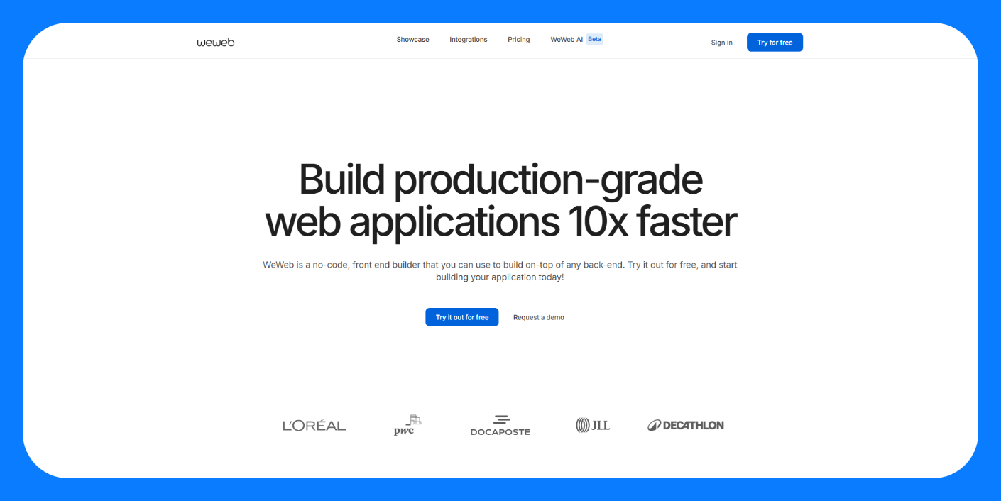 WeWeb is a front-end-focused low-code platform that allows developers to create highly customizable web applications. Unlike UI Bakery, which is focused on building internal tools, WeWeb is designed for building front-end web apps that can connect to any backend (e.g. Airtable, Xano, or Supabase).