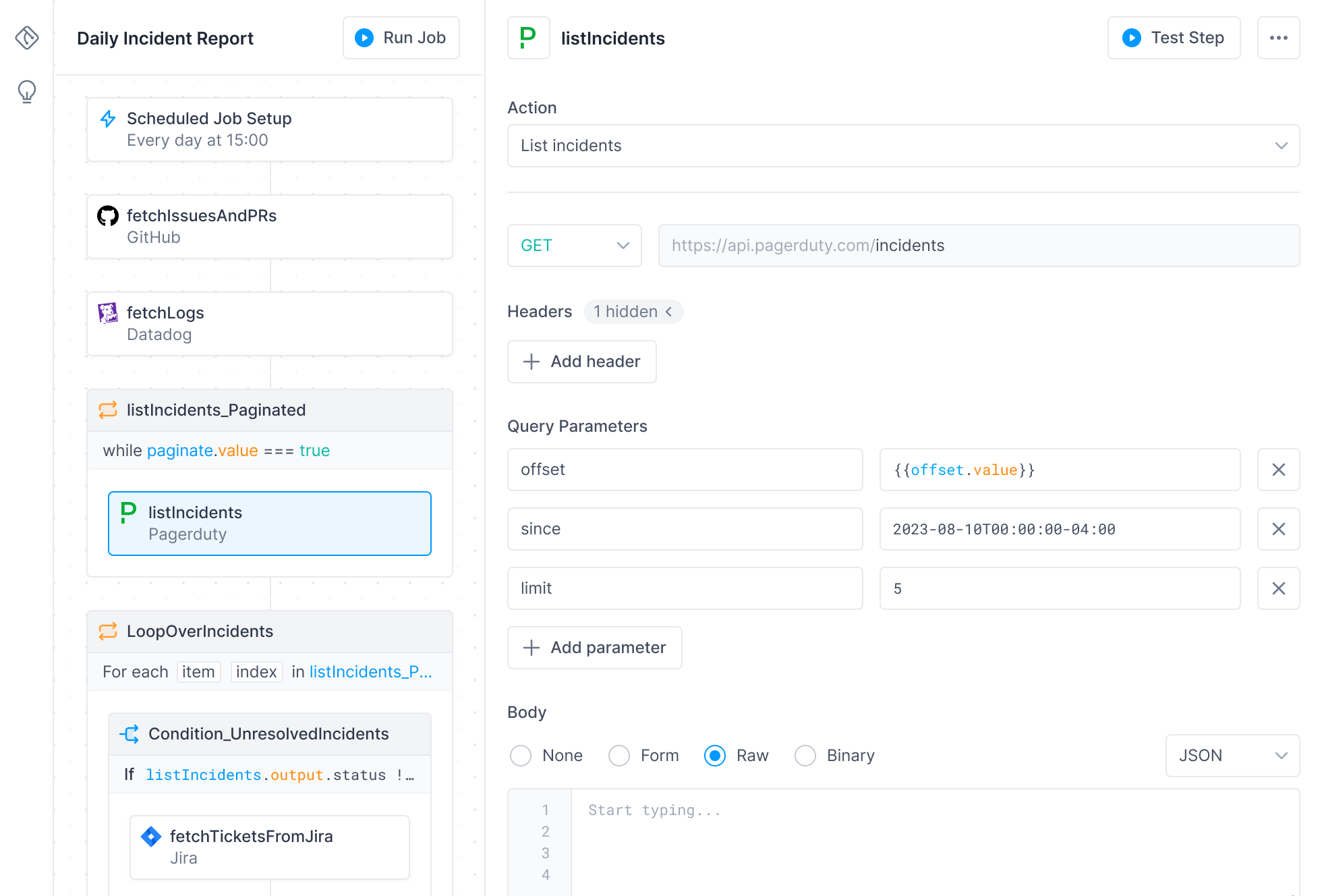Handle pagination, promises, parallelization, error handling and other common logic & control flow visually.